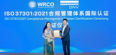 WRCO 是一家非营利性国际组织,立足全球视角,洞察当前组织管理要求,与国际标准对标,高瞻远瞩部署 ISO 37301:2021 合规管理体系建设,历时半年完成体系建设,最终通过了 DNV Risk Based Certification™ 基于风险的认证方法的审核,并获得了 ISO 37301:2021 合规管理体系国际标准认证证书,树立了国际标杆。