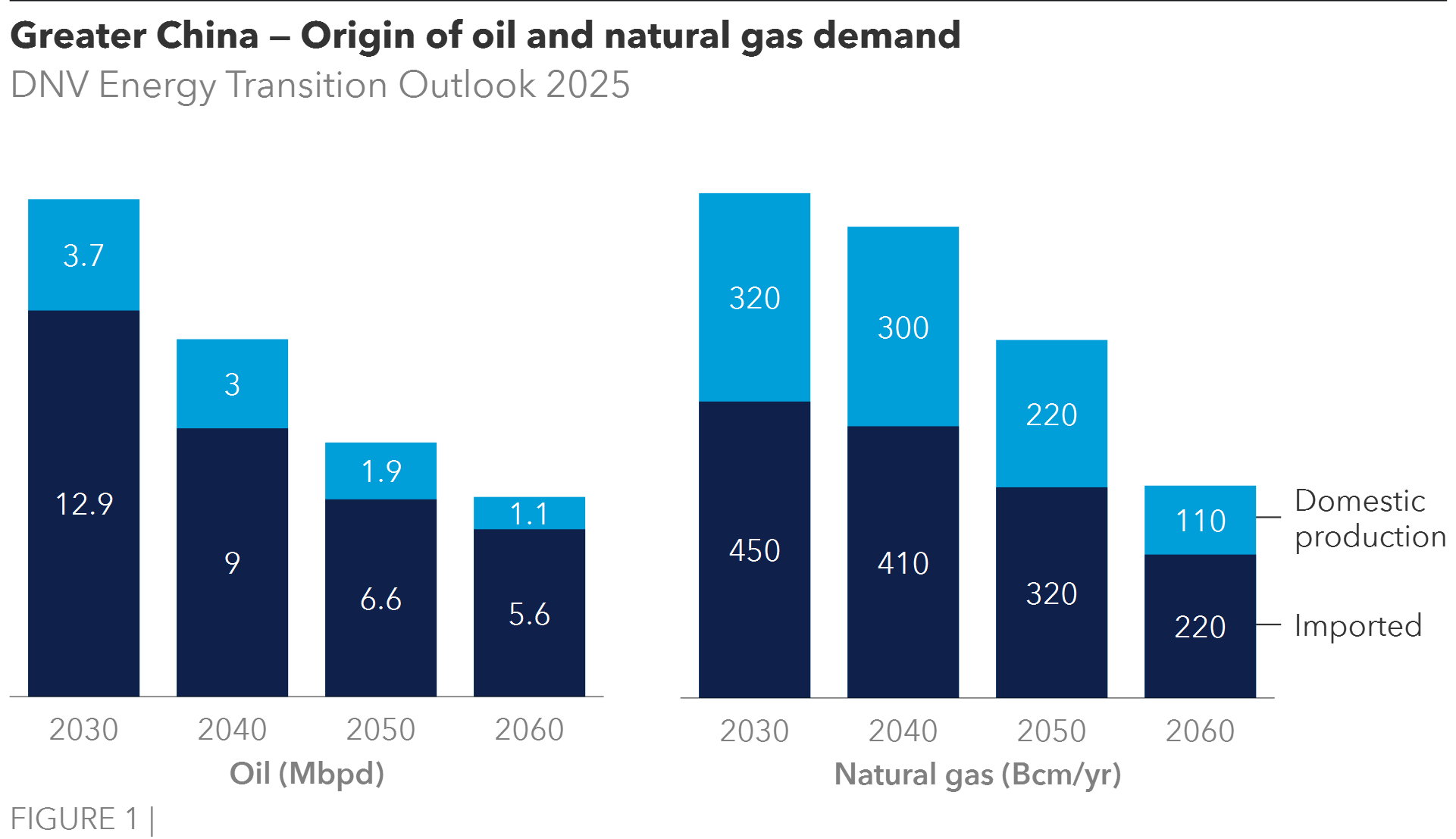 With 26% of the global population, Greater China today emits 34% of the global energy-related emissions, and is responsible for 65% of global coal consumption. Steady planning and execution for the green transition move the region’s share of global emissions to 17% by 2060. The ongoing electrification reduces vulnerabilities to energy imports. However, energy security remains an issue because there will be a continued need for imports, especially for natural gas and oil, which will still meet 19% of energy demand in 2060. Primary energy supply will undergo a remarkable transition as the share of fossil fuels reduces from 86% to 25% following the renewables acceleration that ensures a120% increase in electricity generation over the period. The change in supply is mirrored by demand electrification. The modern manufacturing sector provides electrical equipment both for primary energy supply from renewables and demand-side consumption, both for the region and for the rest of the world. The cleantech manufacturing industry has developed robustly to now contribute 10% of GDP (Myllyvirta et al, 2025). China has become the world’s most important region for supplying equipment for both supply (renewables) and demand (cleantech solutions). Consistent policies underpin the overarching dual goals on energy intensity and steer the march to reduce emissions. Manufacturing, power, and transport (aviation and maritime) will struggle to eliminate their remaining emissions, indicating that additional effort will be needed to reach the goal of carbon neutrality by 2060.