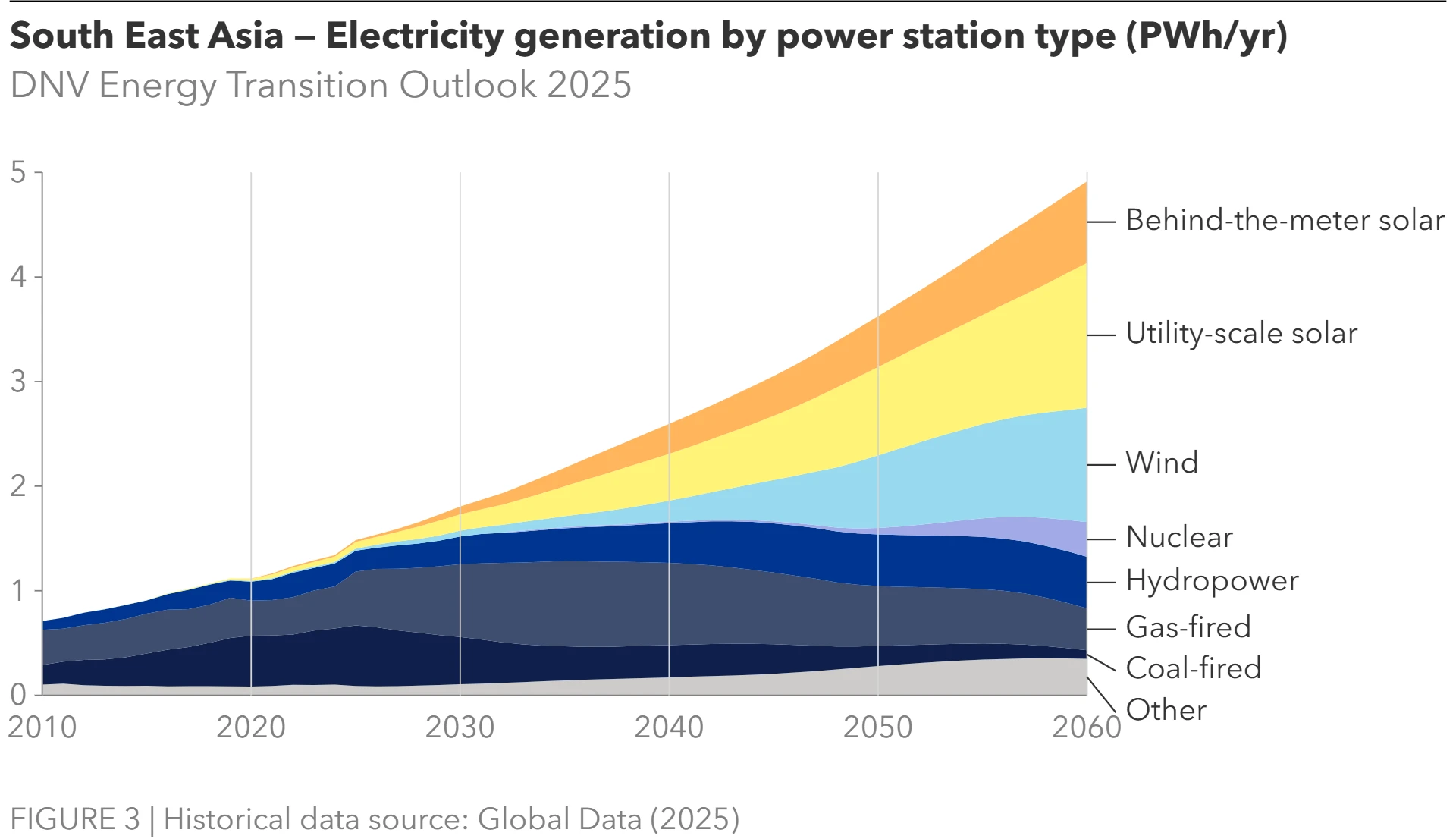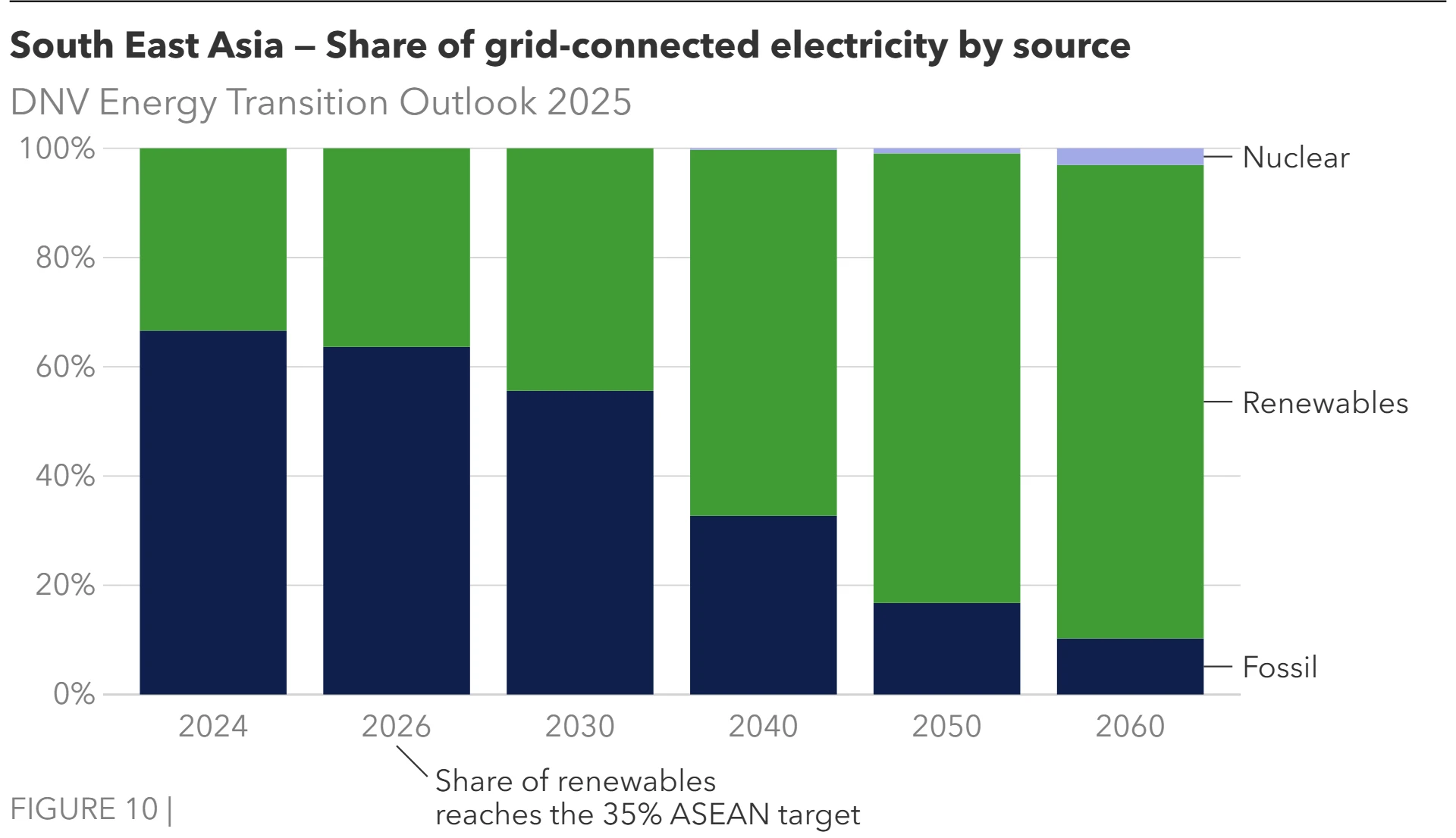 > Nuclear: Several countries in planning phase, including Indonesia for 10 GW capacity by 2040. Vietnam for 6.4GW by 2035, 8 GW by 2050 through cooperation (e.g. Rosatom-Vietnam, January 2025). Thailand for adoption of SMRs. International financing is becoming more available with the nuclear funding ban lifted by the World bank (June 2025). |