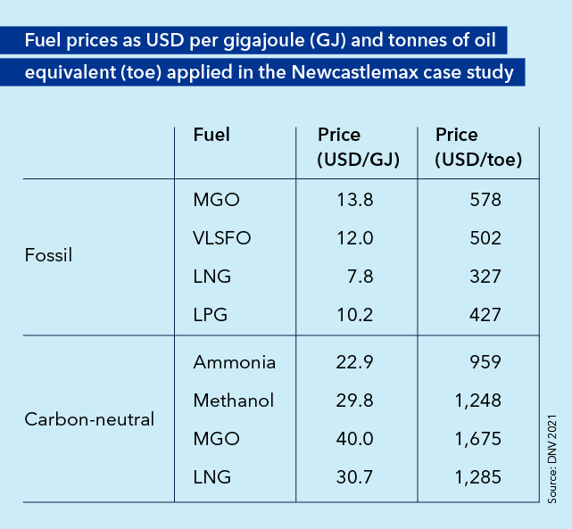 The scenario envisages ammonia being the cheapest carbon-neutral fuel; shipowners serving those customers who are the most demanding when it comes to GHG reductions; and no carbon price –though the model does include scope to evaluate the economic impact on shipping of carbon pricing mechanisms that are being developed.
