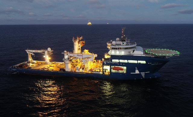 “She does all the high-end work, like spool installation and umbilical work,” says Sveinung Økland, Operation Manager at North Sea Shipping, about his company’s flagship. “She can install very large subsea components, and because of the large deck space she can perform two to three different tasks during a single deployment.” In 2011, the year of her delivery, the ship won Offshore Support Journal’s “Vessel of the Year” award.
