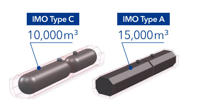 IMO has defined three basic LNG tank types, in addition to membrane tanks. IMO Type A and Type B tanks are non-pressurized, with Type A employing a prismatic design and full secondary barrier, while Type B tanks have a spherical design with a partial secondary barrier. The Type A design employs longitudinal bulkheads, giving it superior anti-sloshing characteristics. Compared to IMO Type C pressurized tanks generally used on smaller vessels, Type A tanks boast 30-40 per cent greater volume efficiencies, an important feature given the additional space required for LNG as fuel compared to fuel oil.