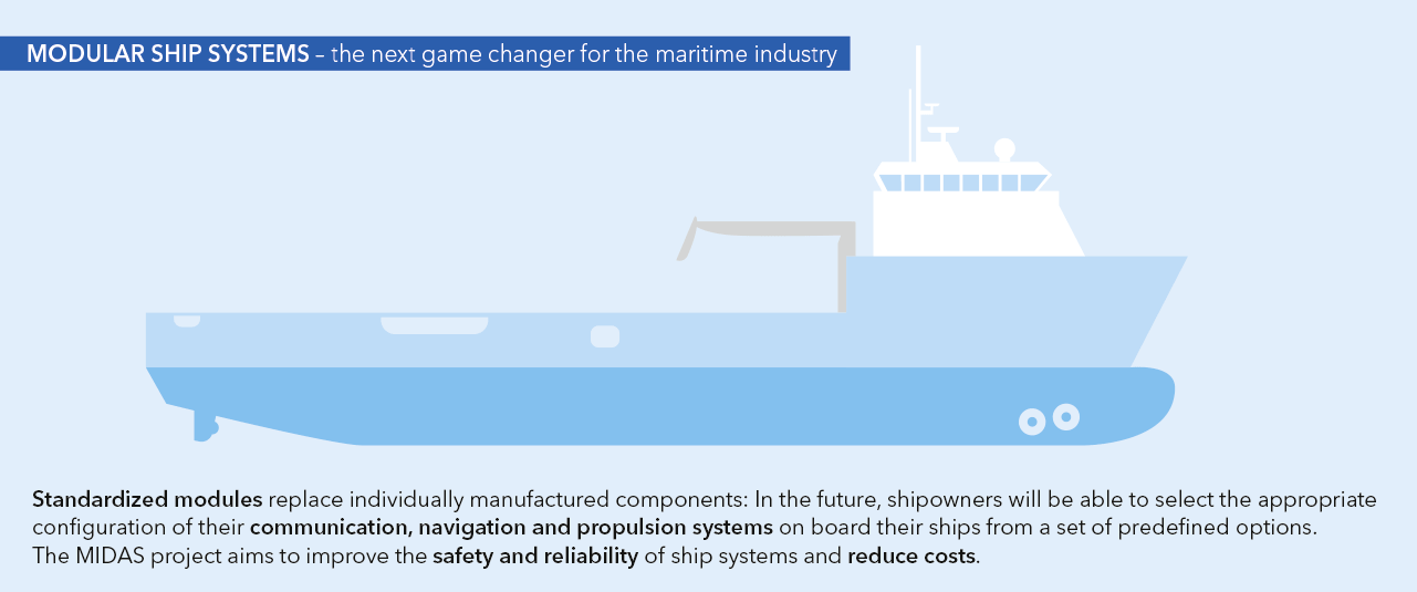 “MIDAS is short for ‘modularity in design for asset servitization’. This means we will examine a scenario in which ship systems are offered in the form of standardized modules, rather than individual components – increasing safety, reliability and reducing costs,” explains Knut Erik Knutsen, Senior Researcher, Digital Class and Services at DNV GL Group Technology & Research.