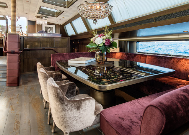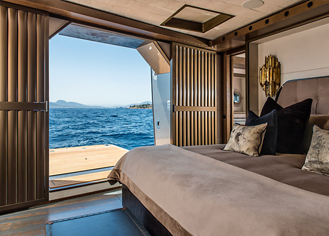 A carbon-fibre hull is a complex, highly sophisticated structure that must be able to handle the loads and torsional forces from wind and waves as a single, coherent organism. Cutting two sizable holes for balcony doors into such a hull seems daring. But Näder, a passionate sailor, knew that his proven partners, naval architects Judel/Vrolijk & Co. of Bremerhaven, the British stylists Design Unlimited, and Baltic Yachts in Finland, would find a way to make it happen; after all, they had worked together successfully for many years. The structural engineering work for the carbon-fibre hull was placed into the trusted hands of Gurit Composite Engineering in the UK, and DNV GL was chosen as the classification society.