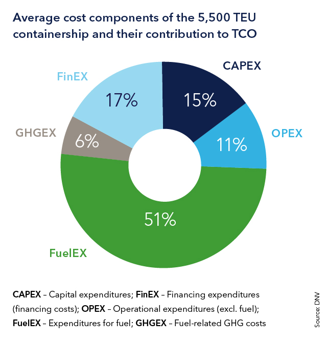 The detailed discussion covers all cost components, including capital investments (CAPEX), financing costs (FinEX), operating expenditures (OPEX), fuel costs (FuelEX) and fuel-related carbon costs (GHGEX). Especially the future fuel and greenhouse gas costs are difficult to predict. Three key influential factors for these cost items have been identified: the uptake and availability of alternative fuels; the availability of technologies to remove CO2 from the atmosphere (carbon capture); and the effects of the regulatory development on restrictions and costs of GHG and air pollutant emissions.