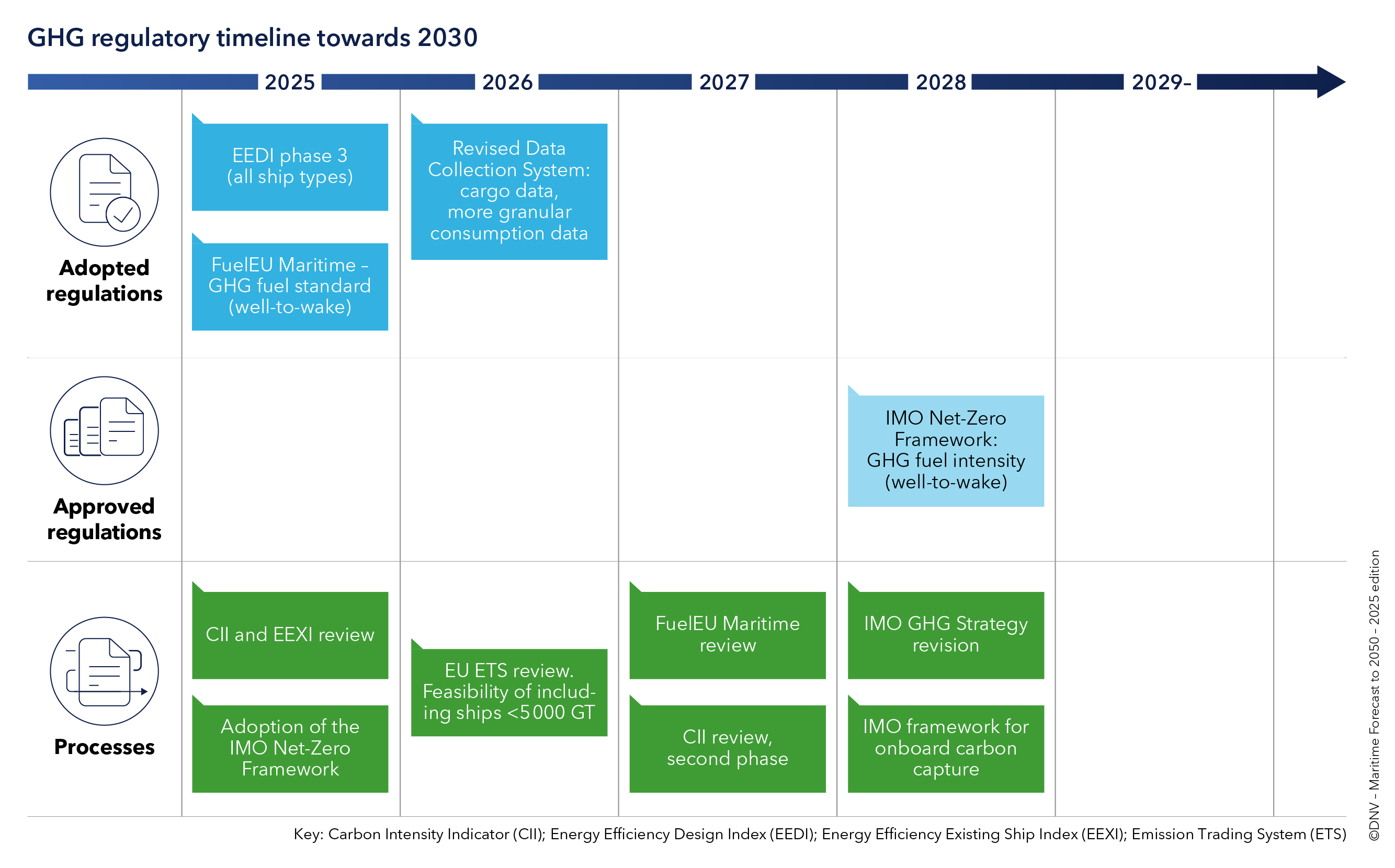 The Net-Zero Framework (NZF) aims to accelerate the adoption of low-GHG fuels and technologies. While voting on adoption of the NZF has been delayed to October 2026, Maritime Forecast to 2050 describes the NZF and compares its consequences with those of relevant EU regulations.