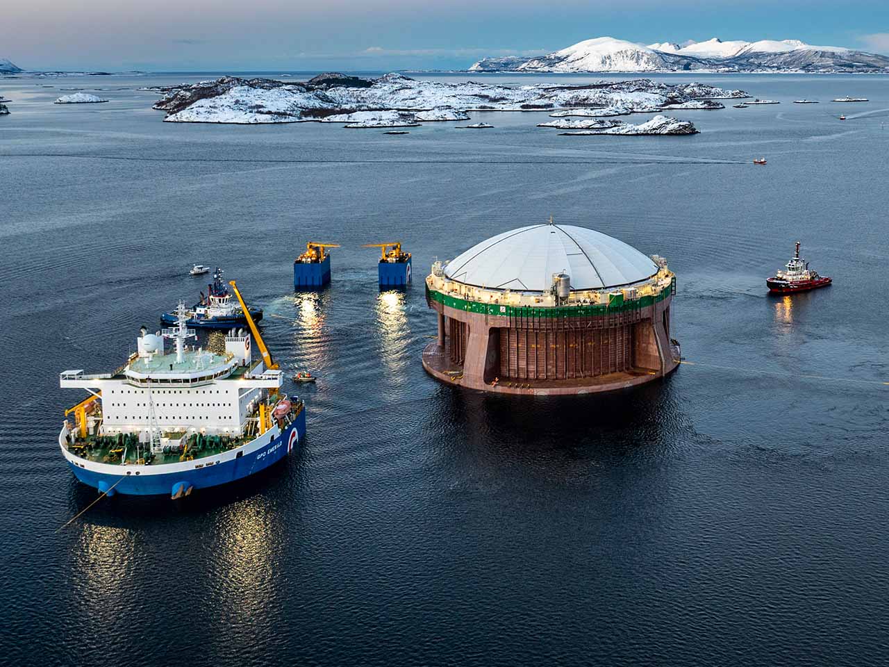 Now that HYDRA has been submerged and permanently anchored in place with only one-third of its height visible above the water line, it blends nicely into the surrounding islands against the skyline of Norway’s majestic coastal mountains.