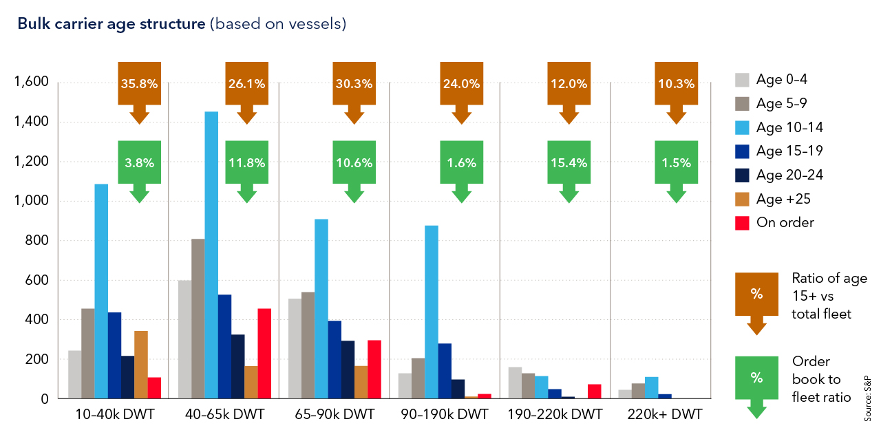 Favourable market conditions for bulker owners are amplified by a supply/demand imbalance for vessels. This has mainly been driven by extremely low newbuild activity between 2019 and 2022, resulting in demand outpacing supply.