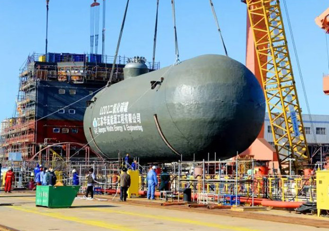 The only LCO2 carriers that already operate are four small-scale DNV-classed ships that carry food-grade CO2 at medium pressure. Various shipowners, shipbuilders and design houses are currently working on designs for larger ships, but so far there have been few concrete orders. Northern Lights has three 7,500 cbm vessels on order at Dalian Shipbuilding Offshore Co. Ltd. in China, also based on medium pressure (15 bara at −28°C). It is acting as the shipowner for the trio, but in December it also agreed a time-charter for a fourth sistership booked by German owner Bernard Schulte.
