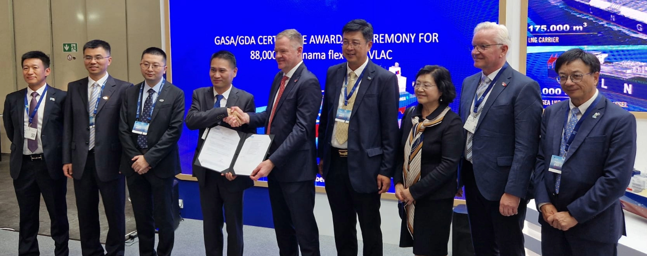 The GASA certificate was awarded for an 88,000 cbm Very Large Ammonia Carrier (VLAC), a design developed through a Joint Development Project (JDP) between DNV and Hudong Zhonghua.