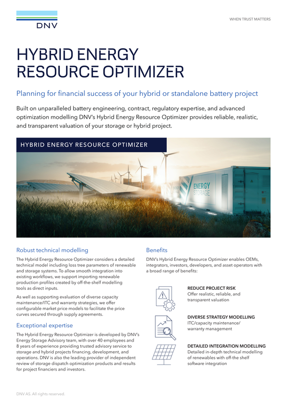 Built on unparalleled battery engineering, contract, regulatory expertise, and advanced optimization modelling DNV’s Hybrid Energy Resource Optimizer provides reliable, realistic, and transparent valuation of your storage or hybrid project.