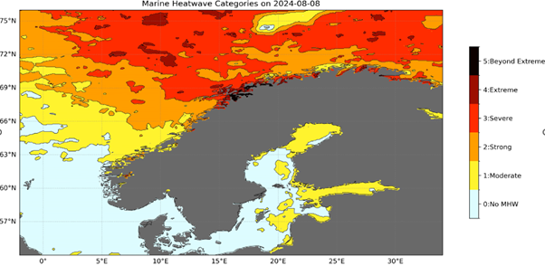 Figure: Analysis and illustration of marine heatwaves in August 2024. © Jie Liu, all rights reserved by Oceanography department, SCPA Åkerblå Group