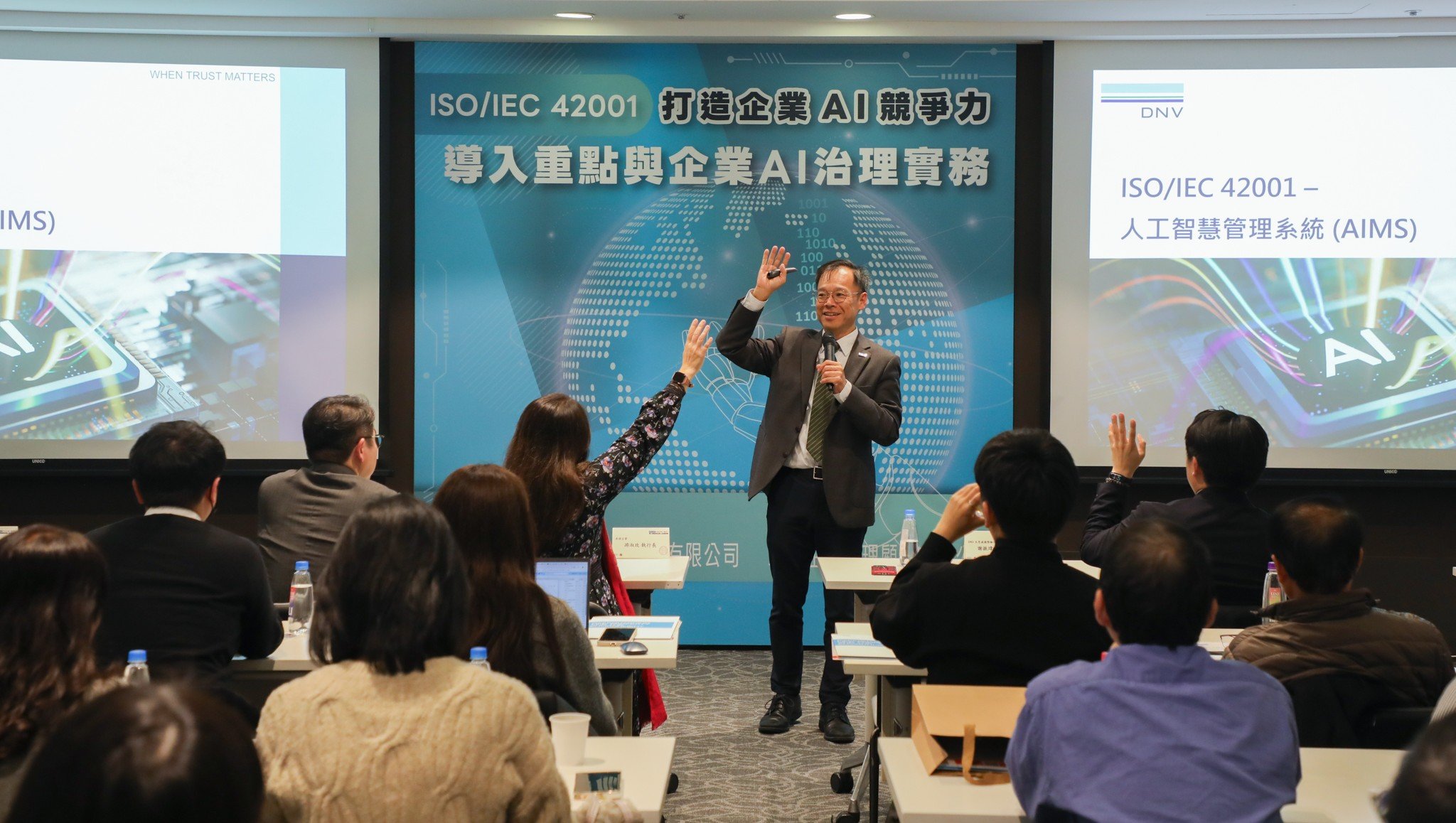 Maritime News from DNV - Business Assurance News from DNV - Business Assurance 找到我们的服务SearchOther sectors2026年 03月 24日 AI 治理與 ISO/IEC 42001:DNV 分享會重點DNV 與承諾企管於台北共同舉辦 AI 治理分享會,聚焦 ISO/IEC 42001 導入、法規趨勢與企業實務,呈現企業如何在發展 AI 應用的同時,強化治理與建立信任基礎。Other sectors2026年 02月 02日 翱騰國際獲頒 ISO/IEC 42001 證書DNV 依據 ISO/IEC 42001 標準完成對翱騰國際的驗證,並頒發證書,翱騰國際成為台灣首家取得此項驗證的企業。Other sectors2026年 01月 05日 ISO 14001 已進入最終草案階段新版 ISO 14001 即將發布,最終版國際標準草案(FDIS)已正式公布。Other sectors2025年 10月 14日 ISO/IEC 27701 新版標準正式發布更新後的 ISO/IEC 27701 將協助公司改善其隱私資訊管理。Other sectors2025年 08月 29日 ISO 9001:2026 國際標準草案版已經發布備受期待的 ISO 9001 修訂草案已經發布,點入了解更多。Other sectors2025年 02月 05日 ISO 14001 更新草案發布備受期待的 ISO 14001 更新草案已正式發布。點入了解更多。Other sectors2024年 12月 17日 DNV 獲認證為 AI 管理系統的驗證機構DNV 現在是 RvA 認可的 AI 管理系統標準 ISO/IEC 42001 的驗證機構。點入了解更多。Other sectors2024年 09月 14日 ISO 發布其首個創新管理系統標準ISO 56001 標準提供了一個結構化的創新方法,幫助組織管理風險並提高達成預期結果的可能性Other sectors2024年 07月 10日 芭芭拉·弗倫西亞當選 IIOA 國際獨立驗證組織主席DNV Business Assurance 集團全球 CEO 芭芭拉·弗倫西亞成為 IIOA 新任主席和指定主席